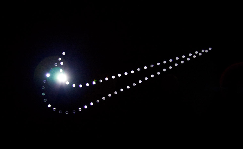 Water, light, the right shutter speed and a laser pen combine to create a ghostly effect in this series.